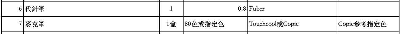 - 代針筆:一般書局購買即可,選順手的即可,線條0.6-1.0的,不要選太細的.