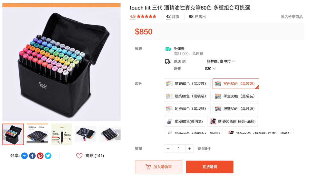 - Touchcool麥克筆:選室內60色.(蝦皮連結)